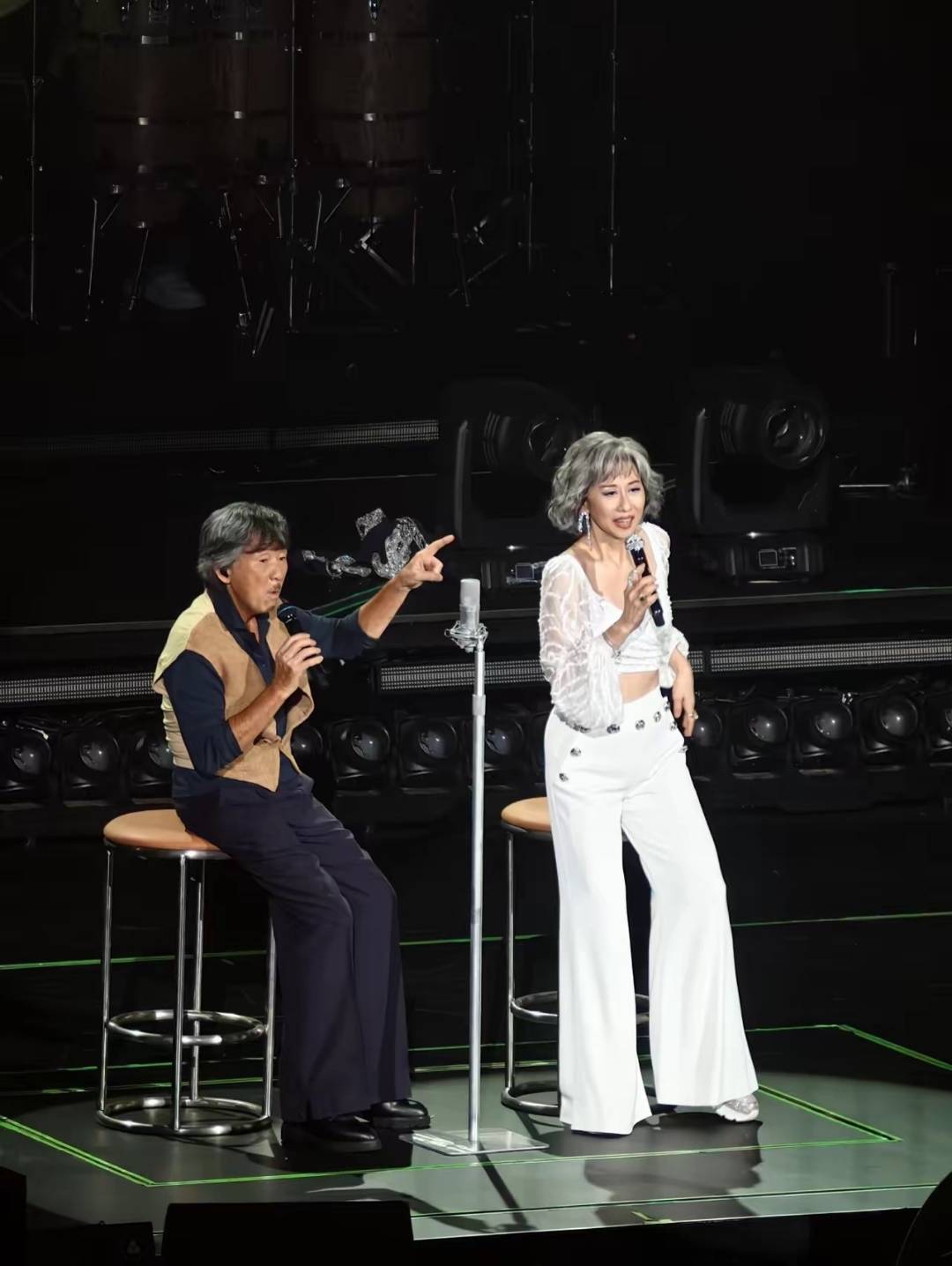 叶倩文的“黑脸”风波要从彩排走位说起。当编舞老师要求她抱着孙女完成《爱的可能》的ending pose时,她突然蹲下身检查孩子的舞鞋——这双由继子林德信妻子准备的公主鞋,鞋跟处镶着的水钻差点刮花舞台地板。“小孩子的安全比完美演出重要。”她对着镜头解释的样子,让人想起29年前她刚嫁给林子祥时,也是这样蹲在地上帮年幼的林德信系鞋带。如今64岁的她满头银发,却依然保持着当年的利落,连朱玲玲探班时都笑她:“还是那个会把保姆车改造成儿童游乐场的叶蒨文。”
